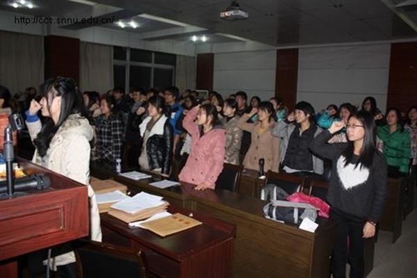 会议开始,张冲老师宣读了此次会议的流程。本次会议分为三个环节,分别是:对应陶陶等9名同志的转正事宜进行讨论表决、对钟梅等29名同志发展为中共预备党员进行讨论表决以及入党宣誓。