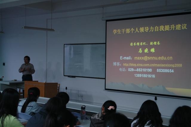 随后,图书馆党总支书记,副馆长马晓雄老师为来自三个公司的100名员工干部做了题为《员工干部个人领导力自我提升建议》的专题讲座。马晓雄讲到做员工干部工作在于追求大学教育的附加值,社会的评价标准和公司内部的评价标准是不同的。同时讲述了学习中的误区,并形象的将学习三境界比喻为蜘蛛式、蚂蚁式与蜜蜂式学习。教同学们要学会使用“卮言”,进行开放性思维与教育反思。其实人人都具有领导潜质和潜能,只是有待于开发而已。最后,马晓雄做了关于领导力特质的测量表,以帮助同学们了解自我能力的缺失,并提出关于员工干部个人领导力提升方法的建议,便于帮助大家更好的完善自我。