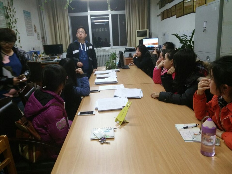 首先张冲老师就上周的义务助理工作进行了总结点评,然后就即将到来的全国老员工四六级考试进行了分析,着重强调了四六级考试对同学们的重要性,现身说法,告诫在座的同学们时间的紧迫性,希望同学们都能在剩下的日子里好好学习,认真读书,大家悉心聆听连连点头。