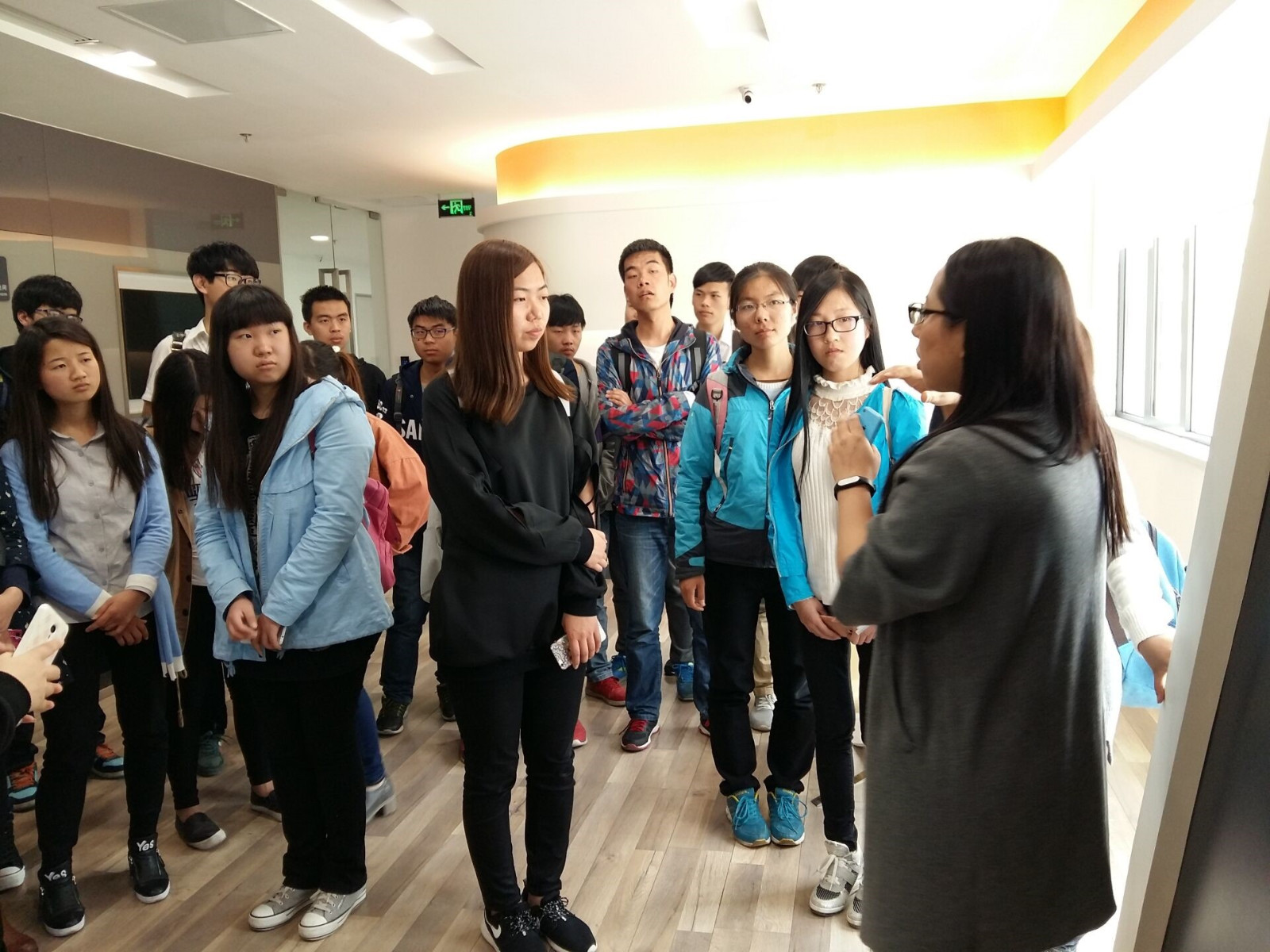 在活跃网络公司、软通动力公司的参观中,由工作人员带领大家对企业环境进行了了解熟悉,第一次进入实企参观,大家均表现出较强的新鲜感与好奇心,对企业工作环境及未来就业情况等踊跃发言咨询。随后,在会议室,公司HR老师对企业概况进行了介绍并与员工进行交流解疑,大家提出了学习就业实习等各方面问题,均得到老师耐心解答,同时老师也提出要进一步牢固基础知识及提高英语水平的建议,并要关注计算机行业的发展,同学们频频点头表示受益匪浅。