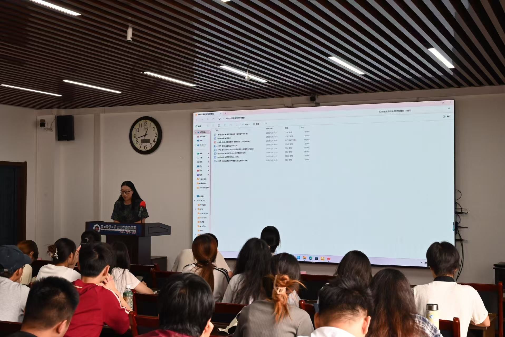 李鹏围绕实习安排、纪律要求、毕设撰写三方面作了安排部署并就行了警示教育;郭康凌从角色转换、师德师风、人际沟通、教学技能、应聘注意事项进行了讲解并组织学习了《新时代中小学教师职业行为十项准则》;洪灵从教师形象礼仪、沟通表达、课程设计、教学环节、主题班会等方面进行了培训;杨婷从材料填写、学分通报、毕设双选、毕业要求、成果申报等方面进行了指导说明;田海东围绕遵规守纪、防范电诈、练好技能方面进行了人身安全、交通安全、食宿安全、就业安全教育。