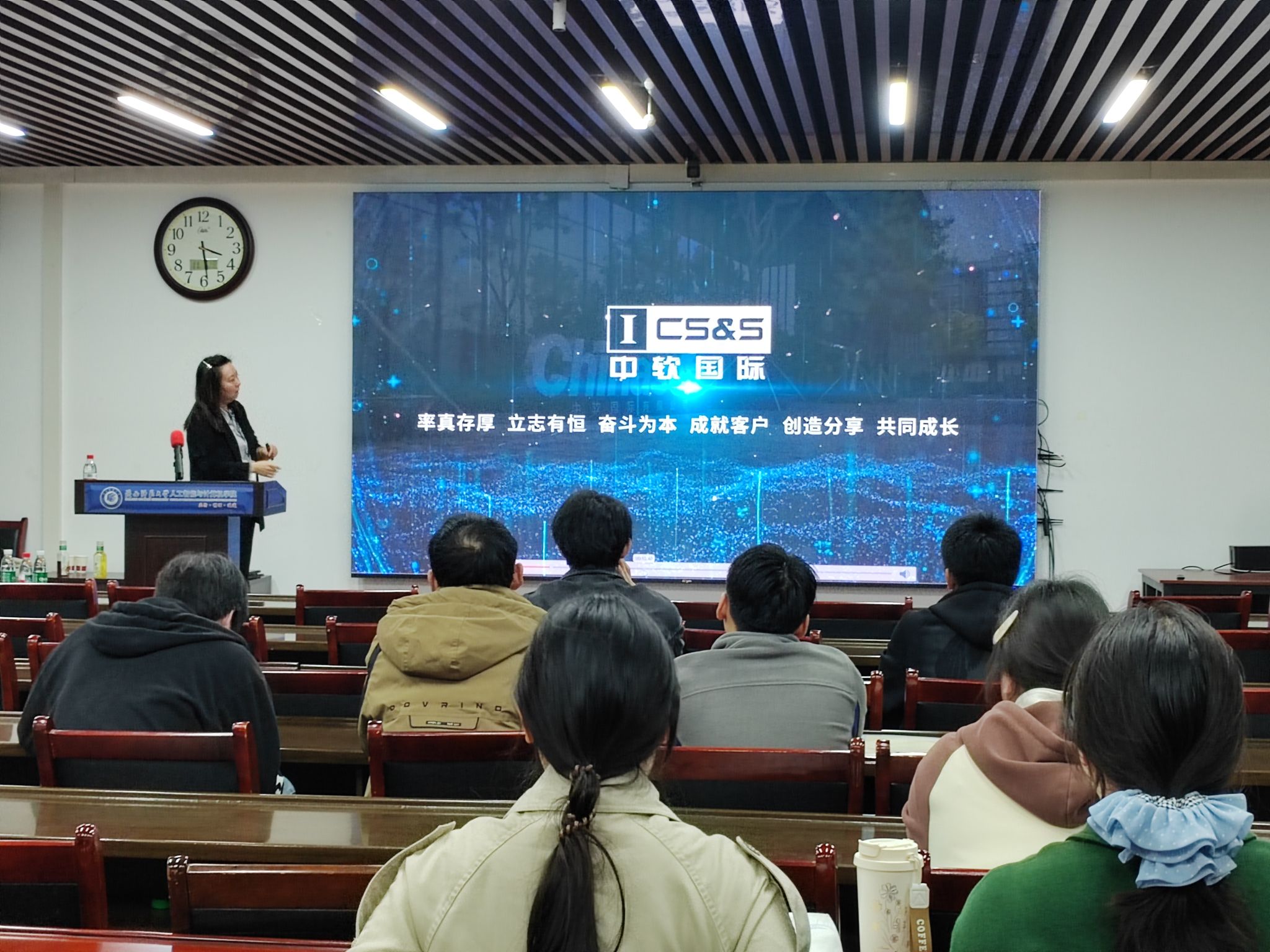 下午中软国际教育科技集团校企招聘负责人袁媛来公司开展招聘宣讲活动,公司研究生、本科生20余人参加活动并现场投递了简历,企业招聘负责人对应聘员工关于技术要求、发展方向等关注的问题进行了详细解答。研究生辅导员袁珂月、本科生辅导员田海东分别介绍了毕业生相关情况,并就下一步就业实习、合作育人等进行了交流探讨。