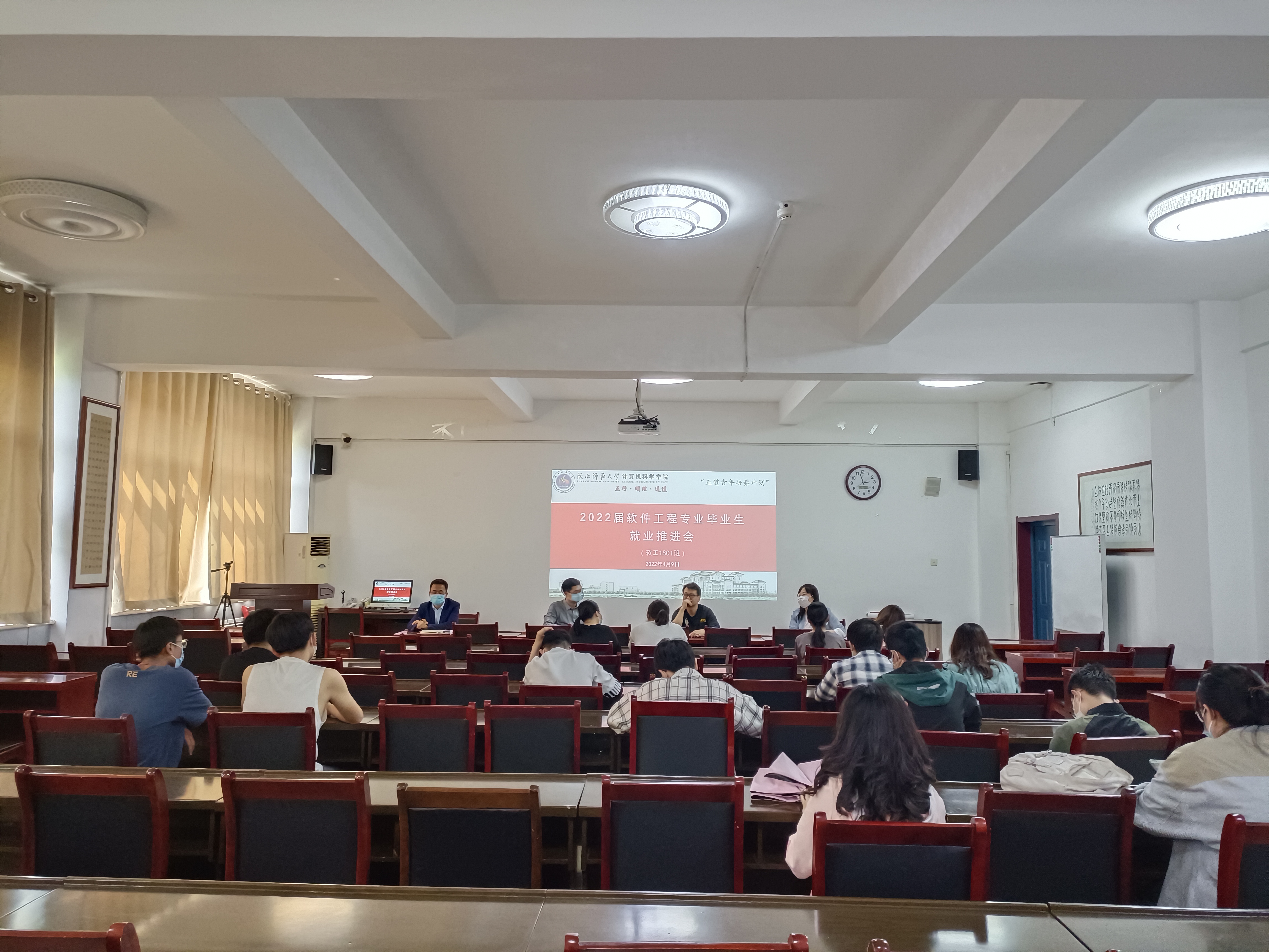 4月9日下午,我院在文津楼3412报告厅召开2022届软件工程专业软工1801班毕业生就业推进会。公司副经理李鹏,党委副书记郭康凌,软件工程学科带头人祁超副教授,17名软工1801班暂未就业毕业生参加会议,会议由毕业班辅导员田海东主持。