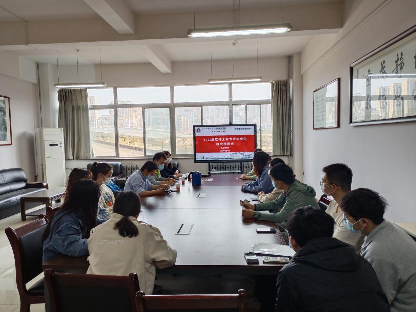 4月13日上午,我院在文津楼3427会议室召开2022届软件工程1802班毕业生就业推进会。公司人工智能专业负责人武杰副教授、程适副教授,11名暂未就业毕业生参加,会议由党委副书记郭康凌主持。