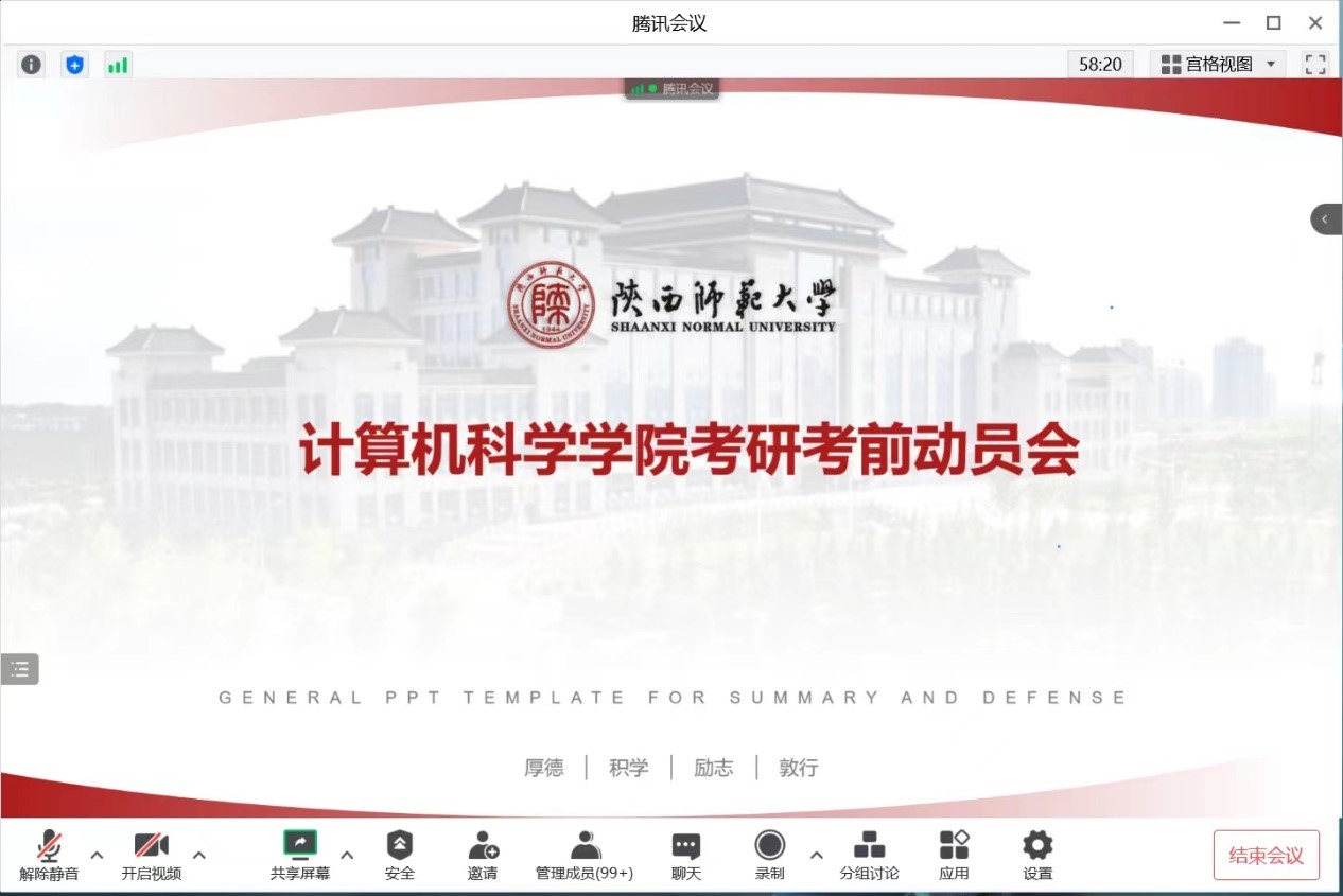 考研日期临近,为帮助员工调整好身心和考试状态,科学备战即将到来的研究生考试,12月13日,我院以腾讯会议线上的方式召开2023届考研考前动员会。公司老师张艳兵、李鹏、董春生、马苗、陈昱莅,辅导员梁星宇、刘柱及2023届全体考研本科生参会。会议由郭康凌主持。