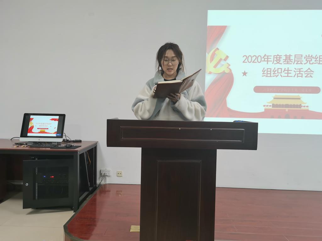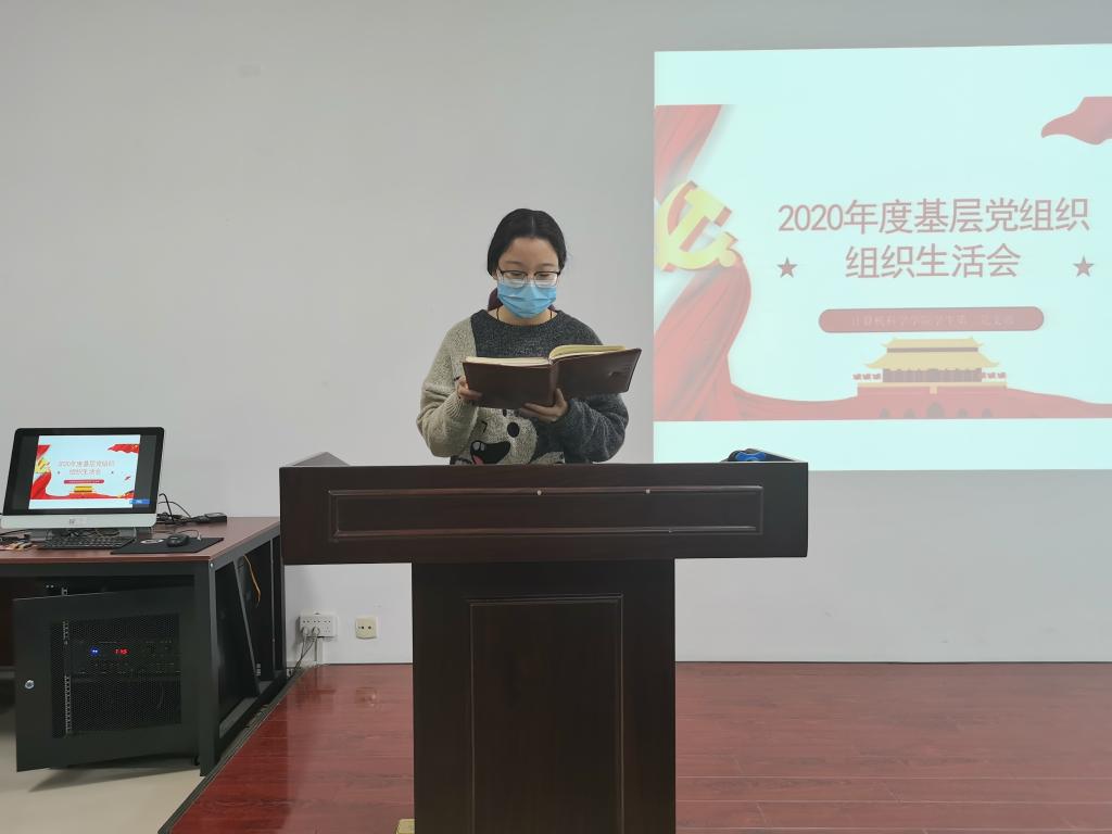 会议的最后,陈子桐总结了本次会议并对党支部工作进行述职汇报。2020年党支部工作存在问题主要是支部自身建设计划性不强和支部活动较难开展,针对相应问题,支部提出了具体有效的改进措施,也对之后的学习任务进行强调,要继续深入学习贯彻习近平新时代中国特色社会主义思想;增强党支部的政治功能;深入严明党的政治纪律政治规矩;推进各项高质量任务落实落地。总结陈述得到了与会党员的一致认可,本次会议顺利结束。