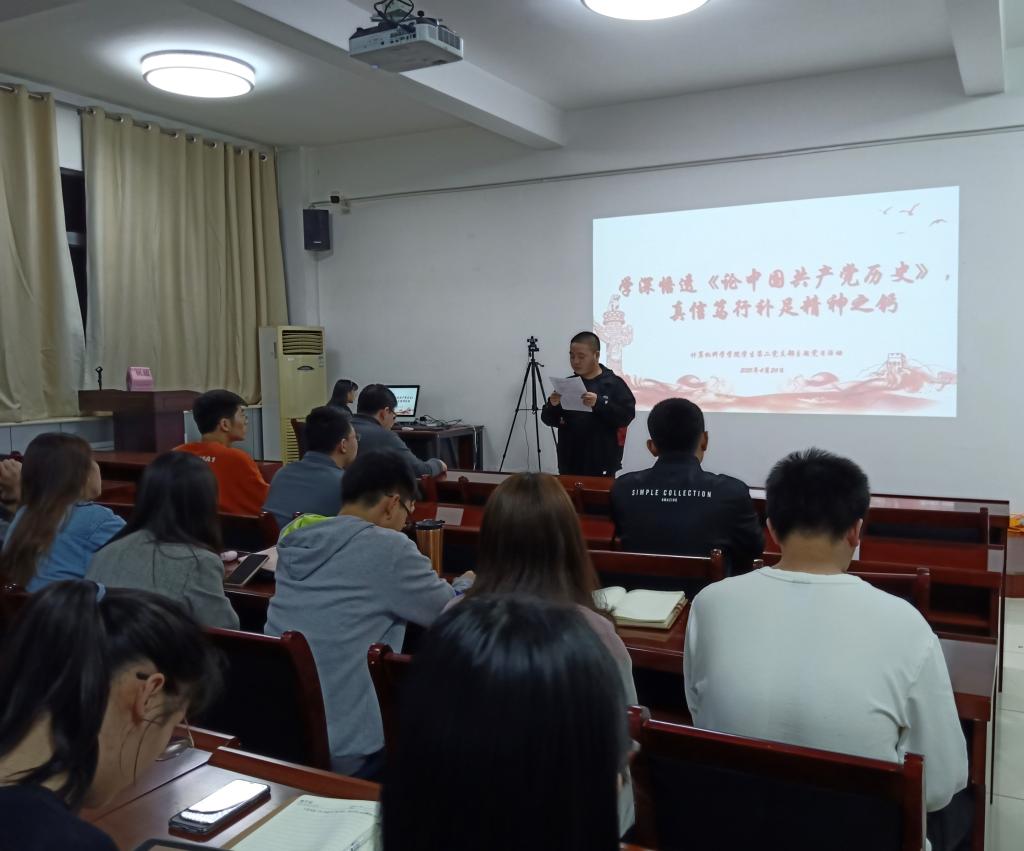 为积极响应党中央的号召,深入学习习近平总书记关于中国共产党历史的重要论述,使广老员工党员学好党史、新中国史、改革开放史、社会主义发展史,3月24日晚20点,公司员工第二党支部在文津楼3412报告厅开展了“学深悟透《论中国共产党历史》,真信笃行补足精神之钙”主题党日活动。本次活动由第一党小组组长刘真同志主持,支部全体同志参加了本次活动。