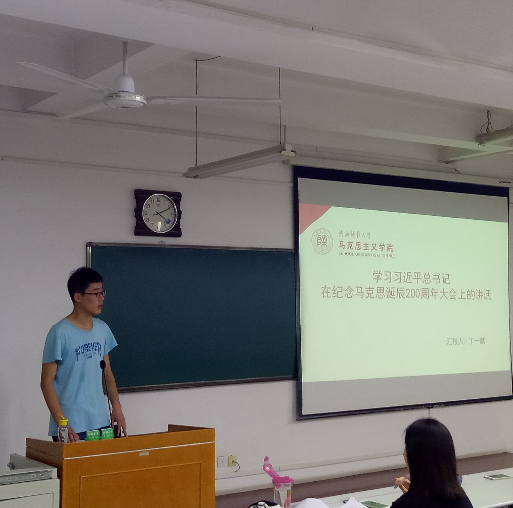 首先,丁一献同志介绍《讲话》深切缅怀了马克思伟大光辉的一生,我们学习的不是一份简单的报告,而是一份指导人类社会发展与中华民族伟大复兴的重要纲领。其次,丁一献同志在学习分享中指出,《讲话》高度评价了马克思主义在人类历史上的划时代意义,本次讲话,更加详细地阐述了马克思主义中国化对我国社会发展的重要意义,为当前我国实现中华民族伟大复兴提供了良好的世界观解释与方法论指导。最后,不忘初心,牢记使命,要从历史中学习伟大经验,继往开来、传承创新。作为一名新时代的共产党人仍然要学习马克思,学习和实践马克思主义,高举马克思主义伟大旗帜,坚定自己对马克思主义的信仰,体会马克思主义的伟大、中国共产党的伟大,为自己是一名中国共产党员而自豪。