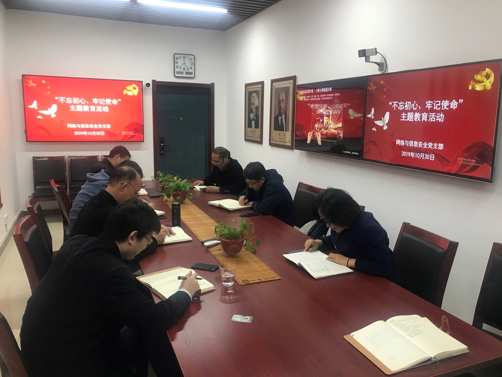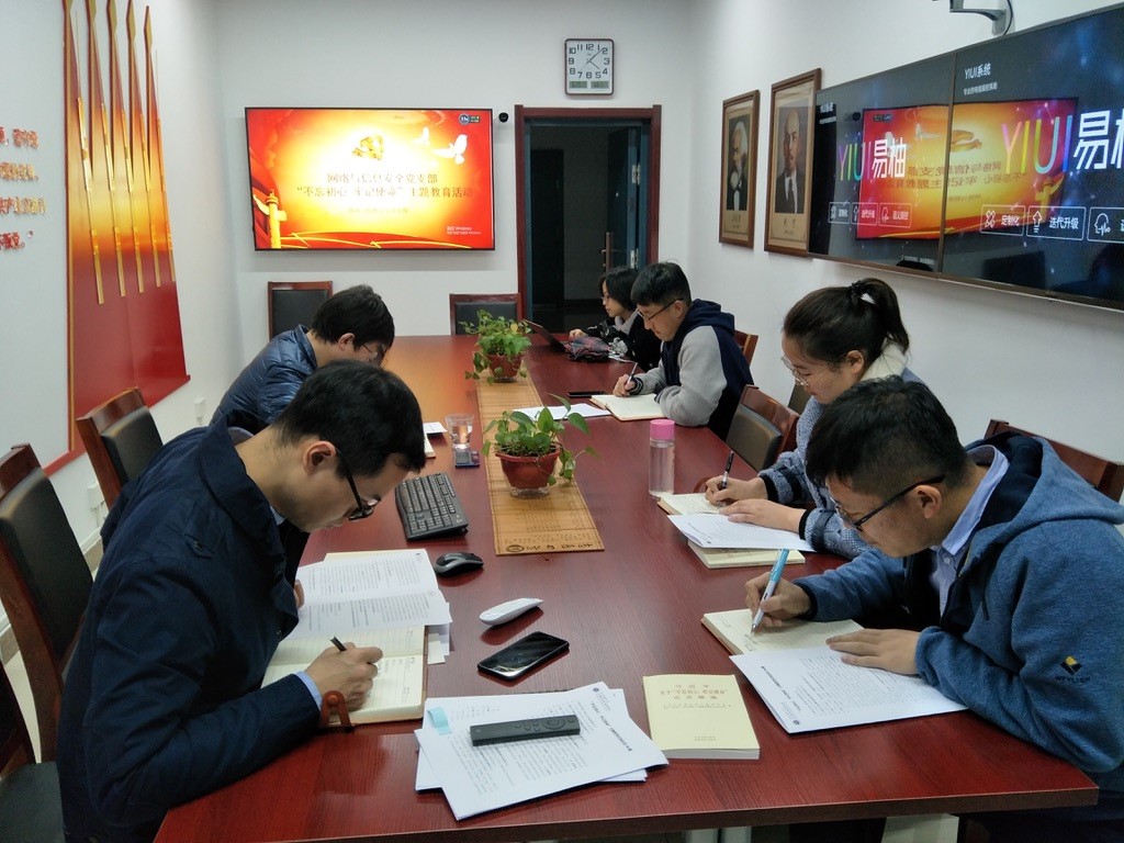 2019年11月6日下午,公司网络与信息安全党支部在文津楼3531党员活动室开展了“不忘初心、牢记使命”主题教育学习会议。在公司党员参加了本次活动,支部书记禹勇安排了本次学习会议的主要内容。