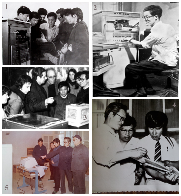 图1:主要研制专家之一曹豫莪教授(右三)指导员工使用DJS130计算机